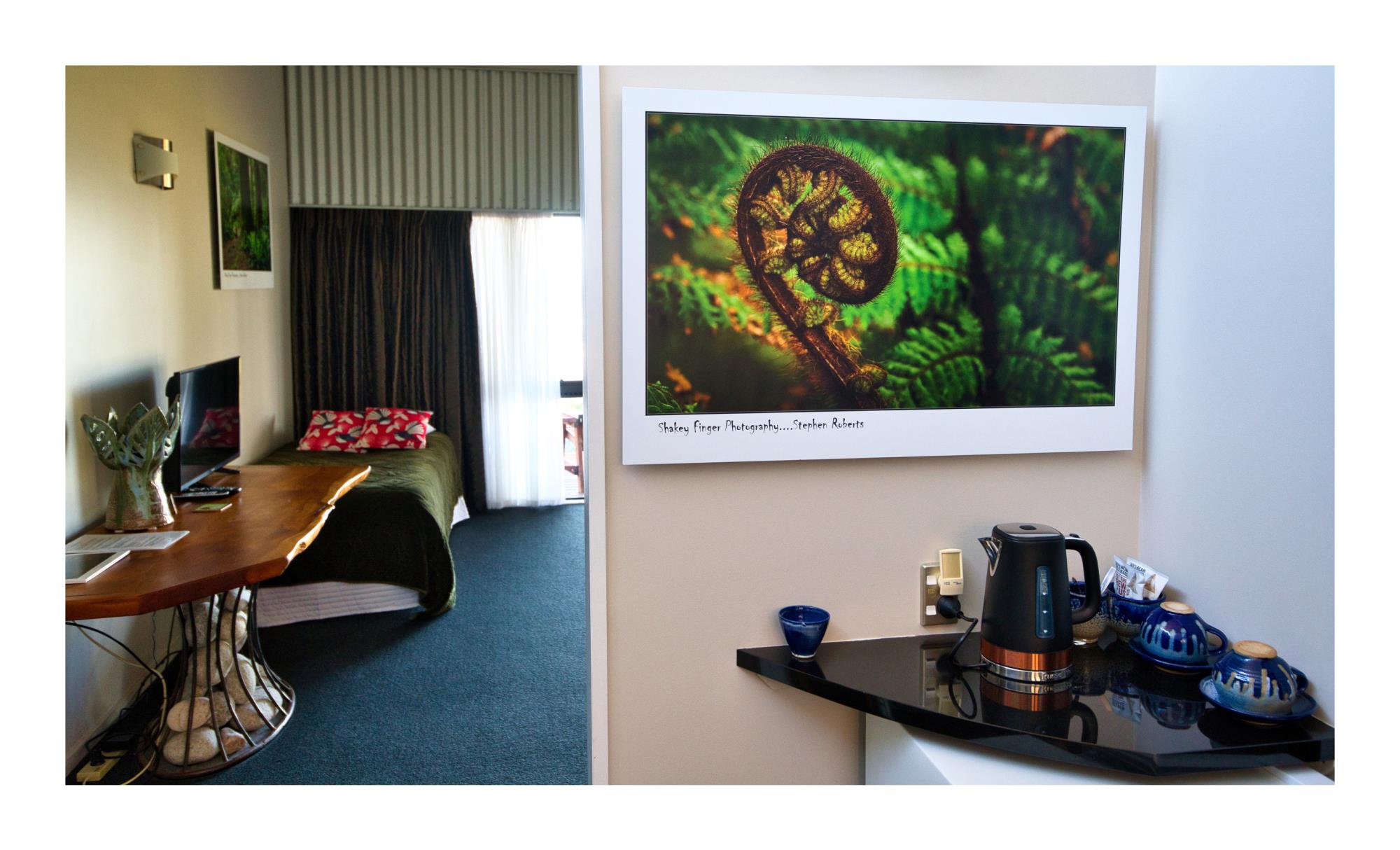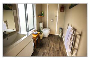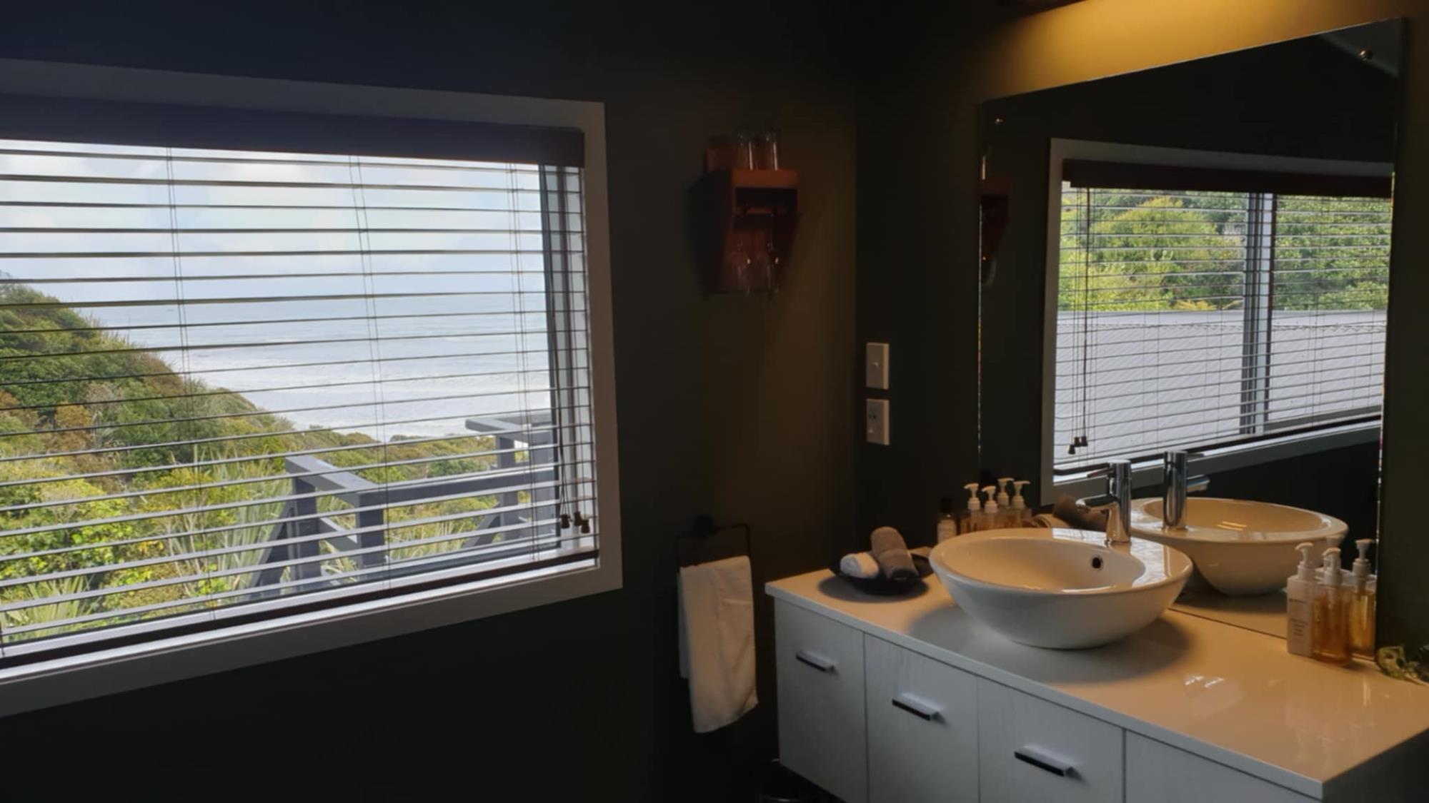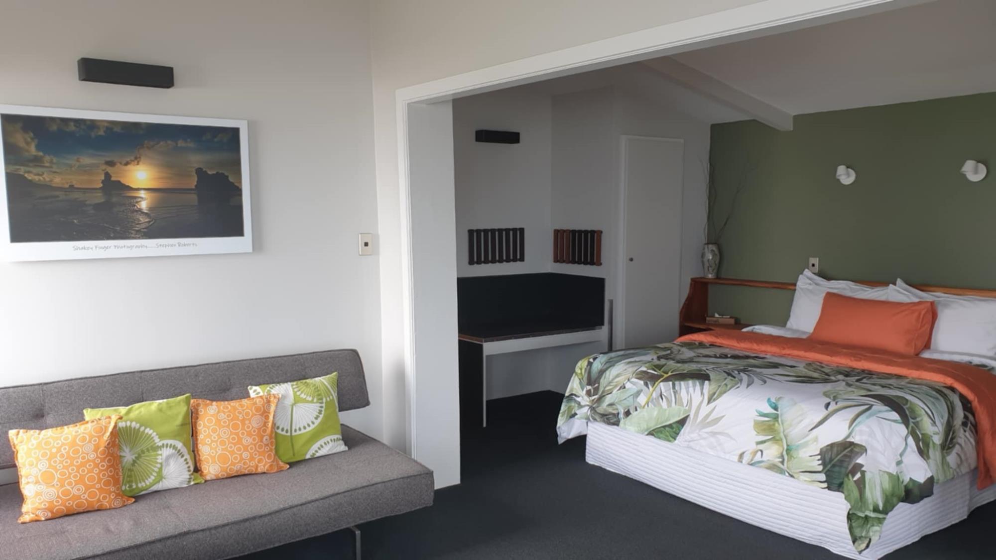 Koru opens into a wonderful large room, warmly decorated with NZ native timbers and beach stones with super-king bed positioned to make the most of the fabulous views. Super King bed and sofa chair that can be made into a single bed so suitable for double or twin occupancy (triple if child under 12 years old -additional fees apply). Decorated in warm neutral tones in keeping with our beachfront location. Large ensuite bathroom with shower.