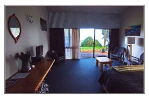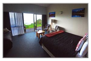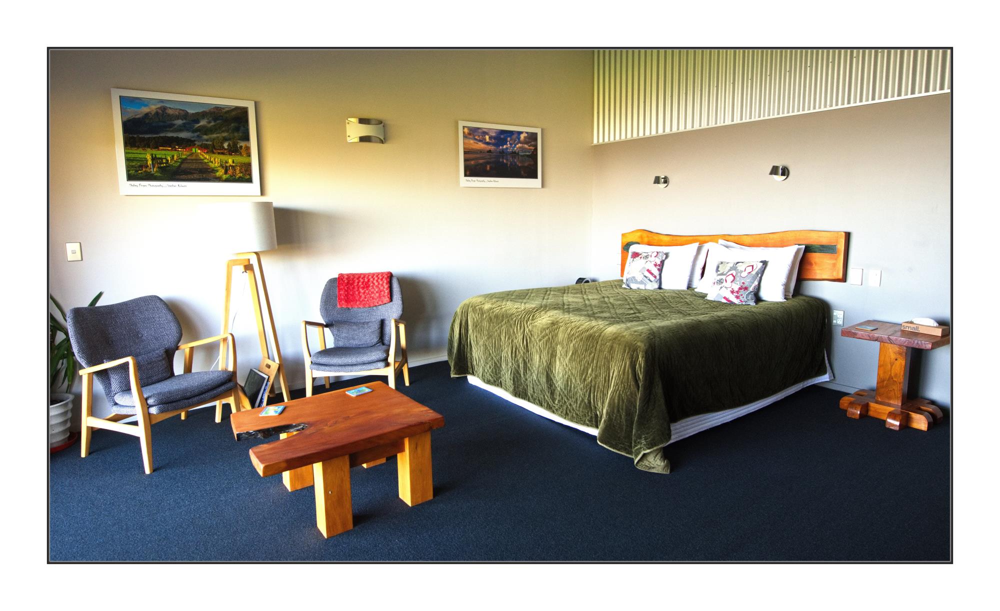 Kowhai is decorated in warm colours with NZ native recycled furniture, you can lie in bed and watch the surf. A comfortable sitting area is provided and makes the most of the fantastic views of our grounds, the beach and the mighty Tasman Sea. The room opens onto the balcony with large picture windows so no matter what the weather you can enjoy our beachfront location. Kowhai has a king bed.