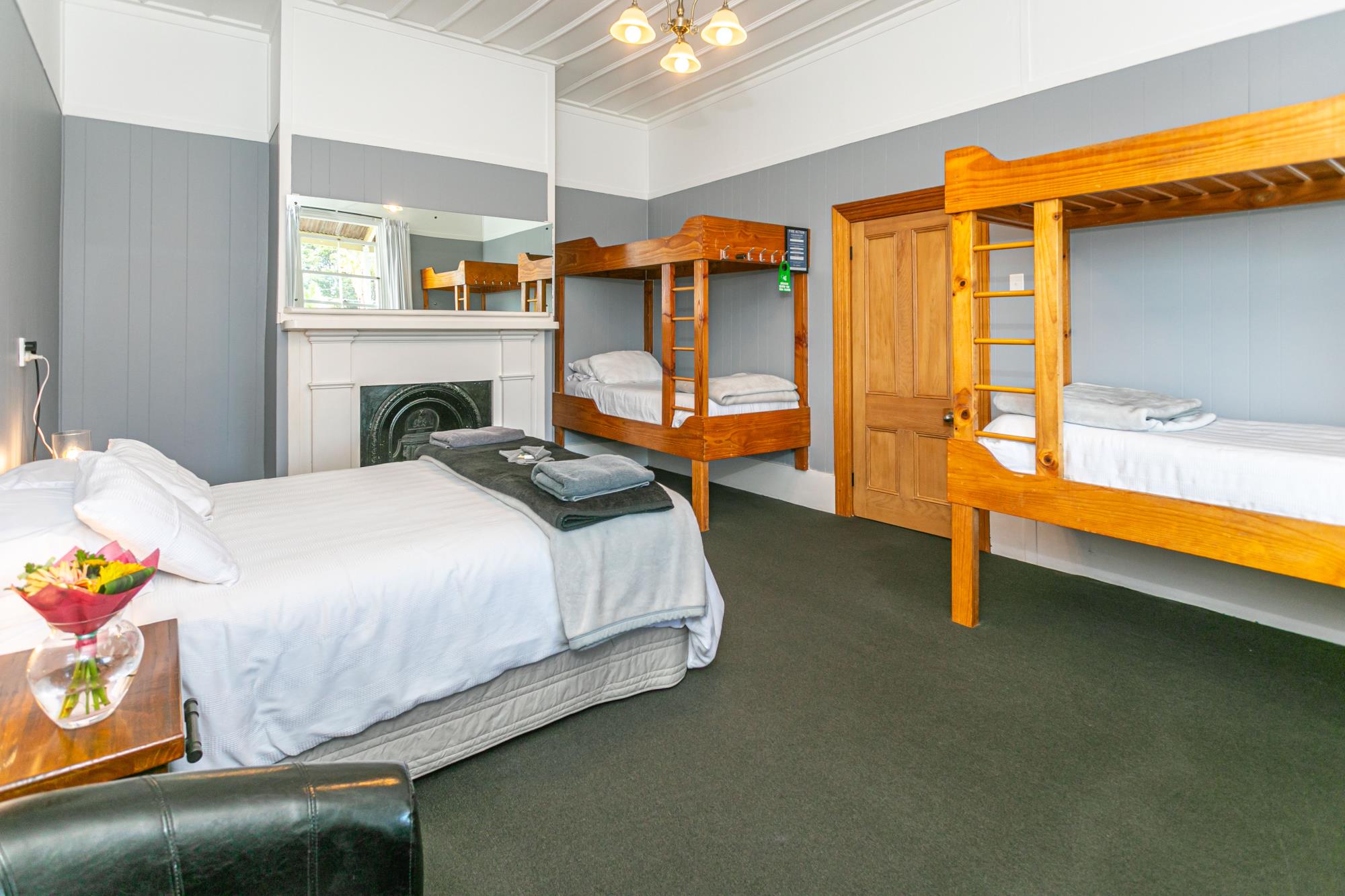 This larger room has a queen sized bed and 2 bunk-style beds and overlook the Balcony. Each bed is made up with premium quality sheets. We supply fluffy bath sheets, complimentary toiletries, coffee and specialty teas and treats. Bathrobes are available on request. Each morning you will be served breakfast and rooms are serviced daily. You have use many guest areas including lounge, outdoor areas and dining room with fridge, microwave, cutlery and crockery. Bathrooms are shared.