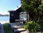 Kiwi - North facing deck on the beachfront. This cabin has 1 x Queen bed in the main area and 2 x singles in a small room separated by a sliding door. There is a kitchenette and a fully equipped bathroom with toilet shower and basin. The Queen bed is fully made-up including sheets, blankets and towels. Singles have a bottom sheet and pillows including pillowcases. Bring your own linen or book linen hire at $10 per bed per stay. Extra Adults $25 & Extra Children $15 per night