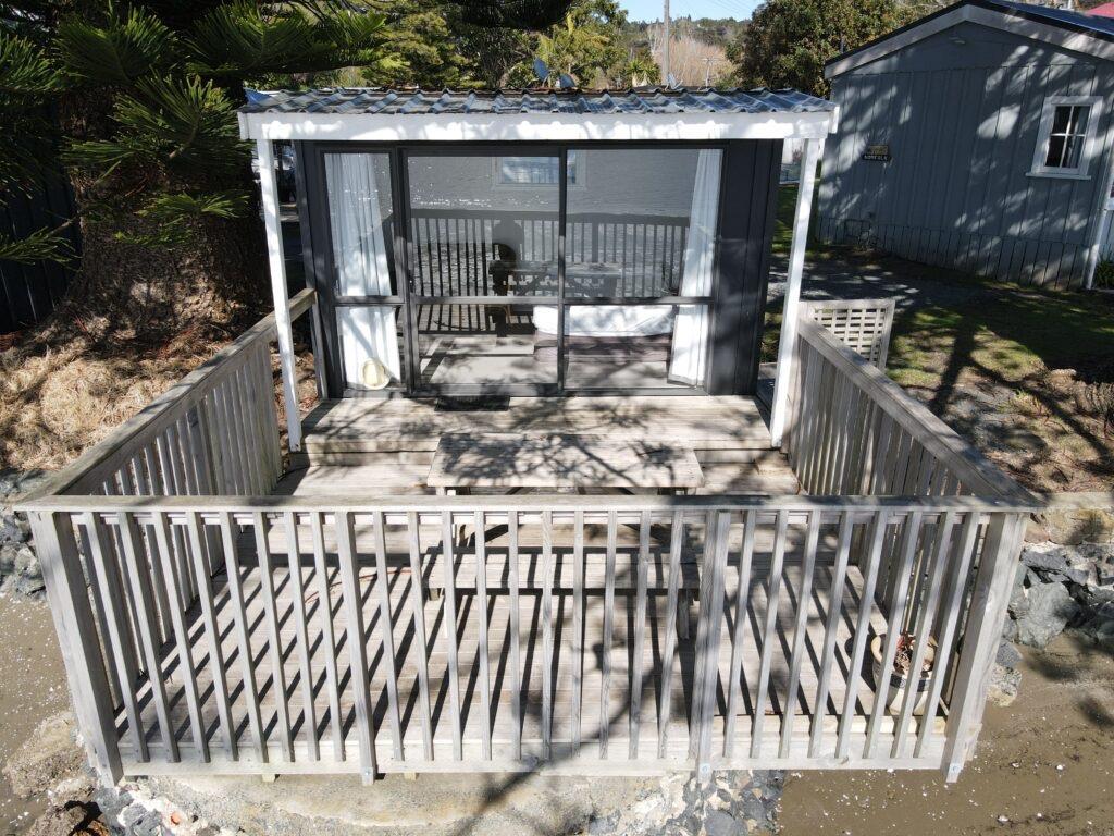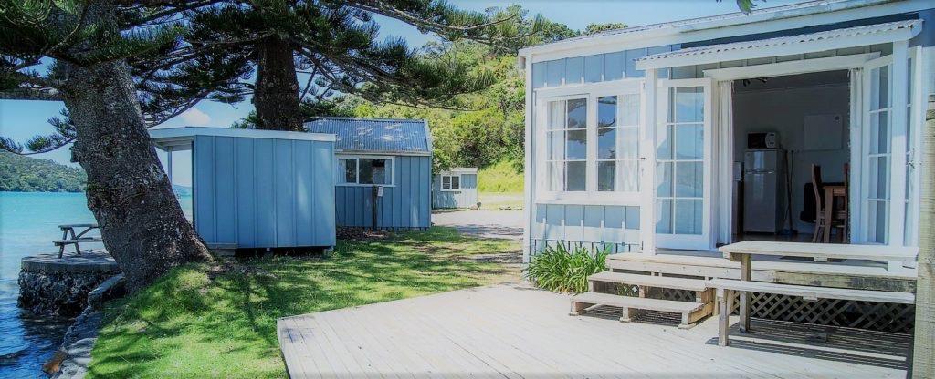 Tui - North facing deck on the rock wall of the beachfront. This cabin has 1 x Queen bed in the main area and 2 x singles in a small room separated by a sliding door. There is a kitchenette and a fully equipped bathroom with toilet shower and basin. The Queen bed is fully made-up including sheets, blankets and towels. Singles have a bottom sheet and pillows including pillowcases. Bring your own linen or book linen hire at $10 per bed per stay. Extra Adults $25 & Extra Children $15 per night