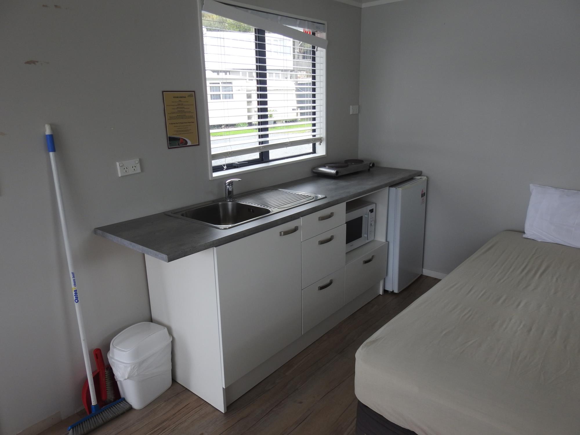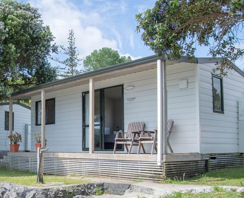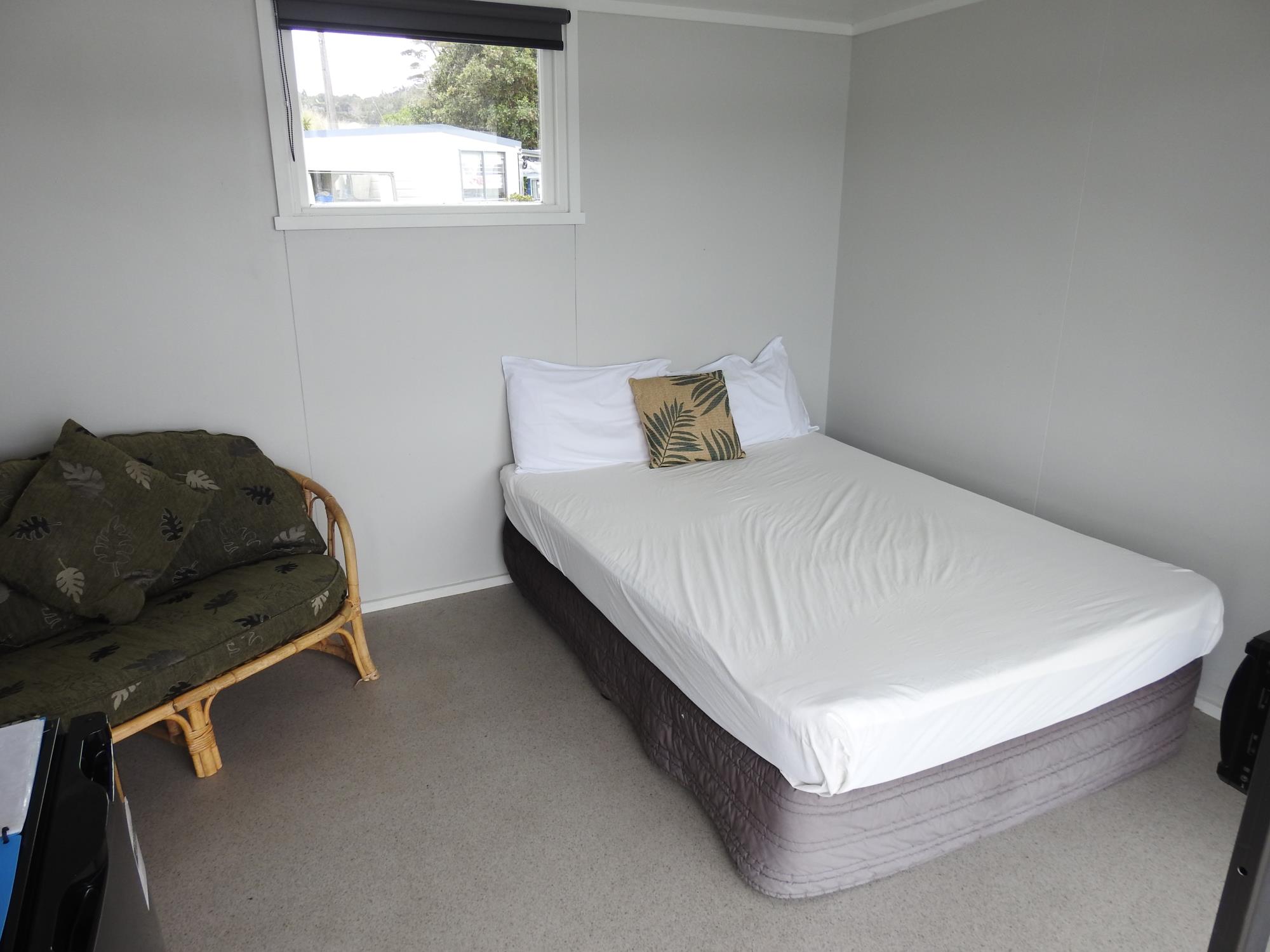 Pohutukawa - Waterfront kitchen cabin with fully equipped kitchen. 1 x queen bed at the back of the main room. The bed has a bottom sheet and pillows with pillowcases. You need to bring your own linen or hire linen for $10 per bed set. This cabin also has a sofa bed so could sleep another 1 or 2 people. Extra Adults $25 & Extra Children $15 per night