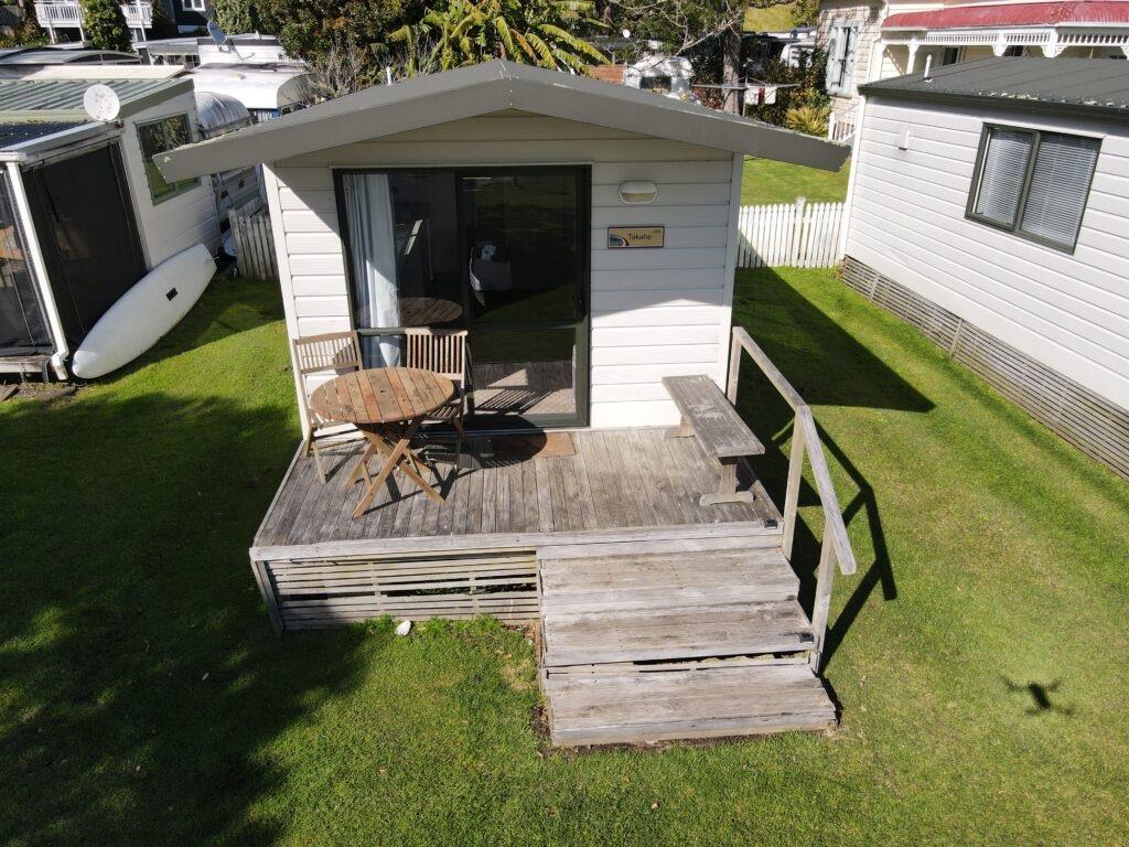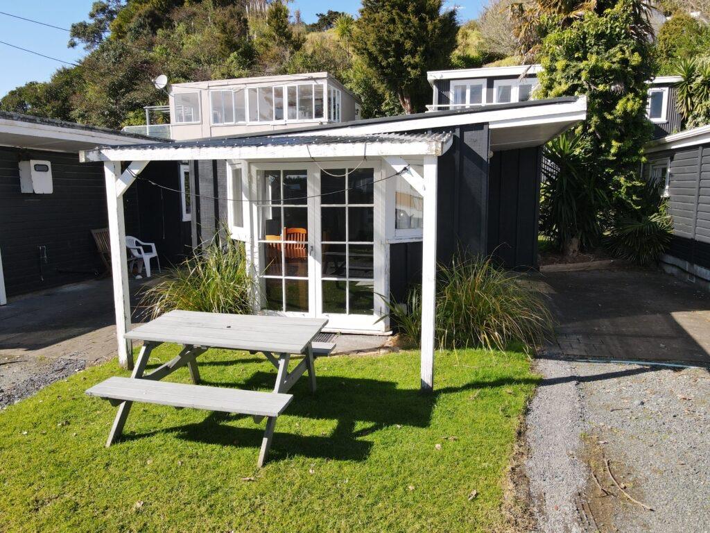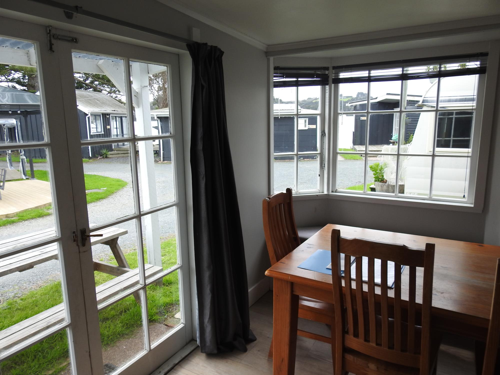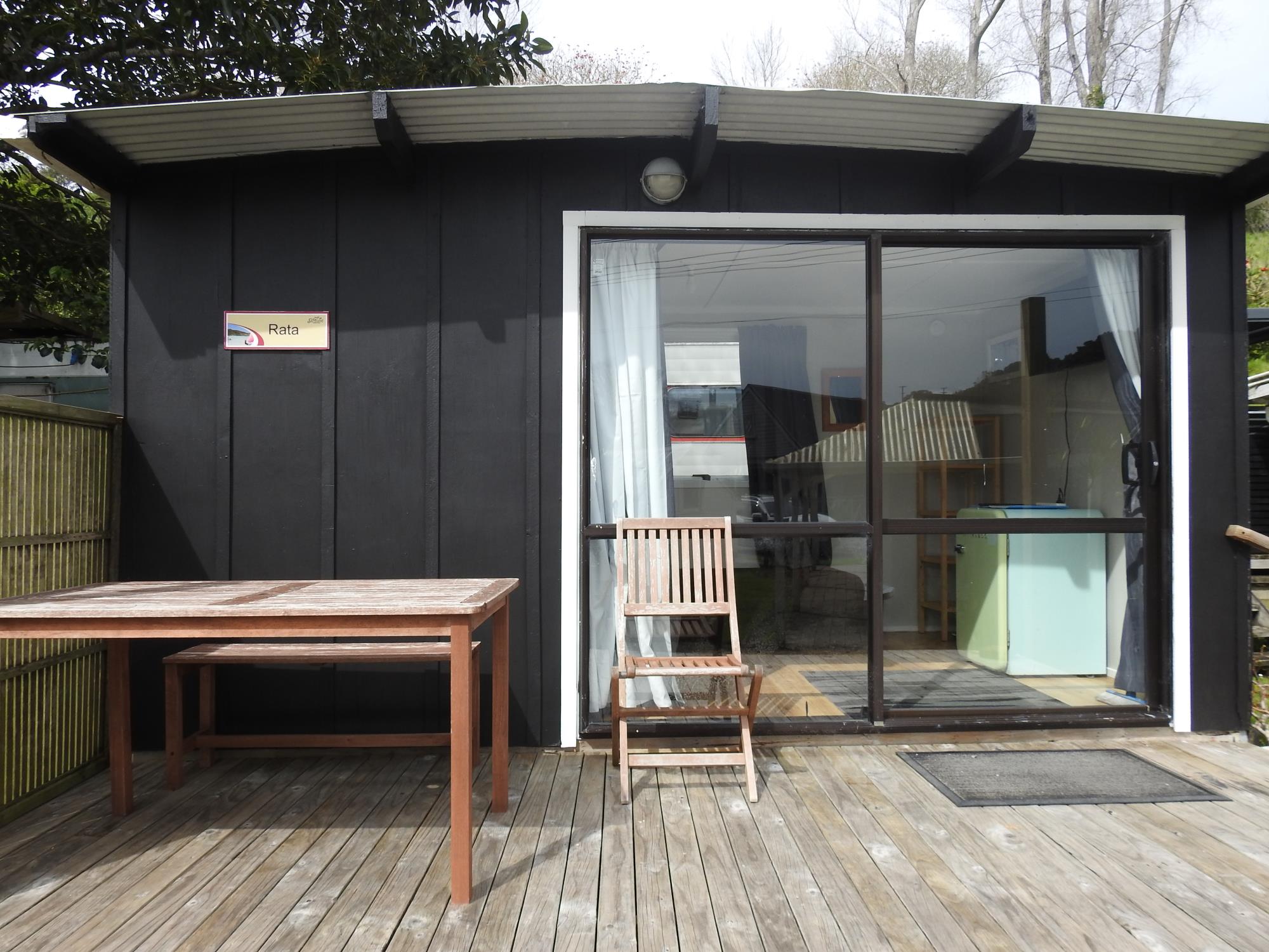 Takahe - Non-Waterfront self-contained cabin located 1 back from the beachfront. This cabin has 1 x double in the main room and a small bathroom at the back of the cabin. It also has a fold down couch so could sleep an extra 1 or 2 people. It has a fully equipped kitchen and a small deck at the front. The Queen bed is fully made-up including sheets, blankets and towels. Bring your own linen for the couch or book linen hire at $10. Extra Adults $25 & Extra Children $15 per night