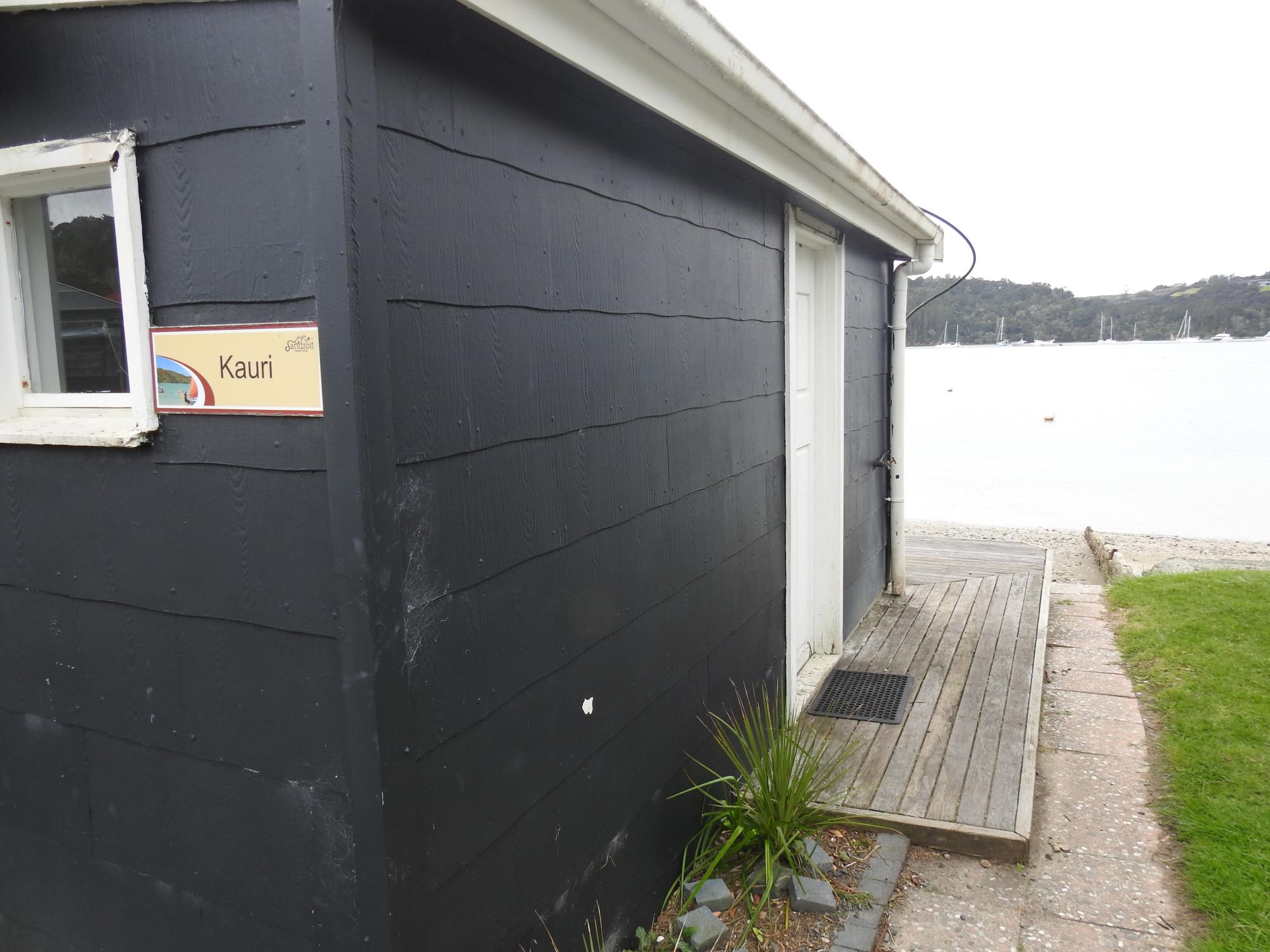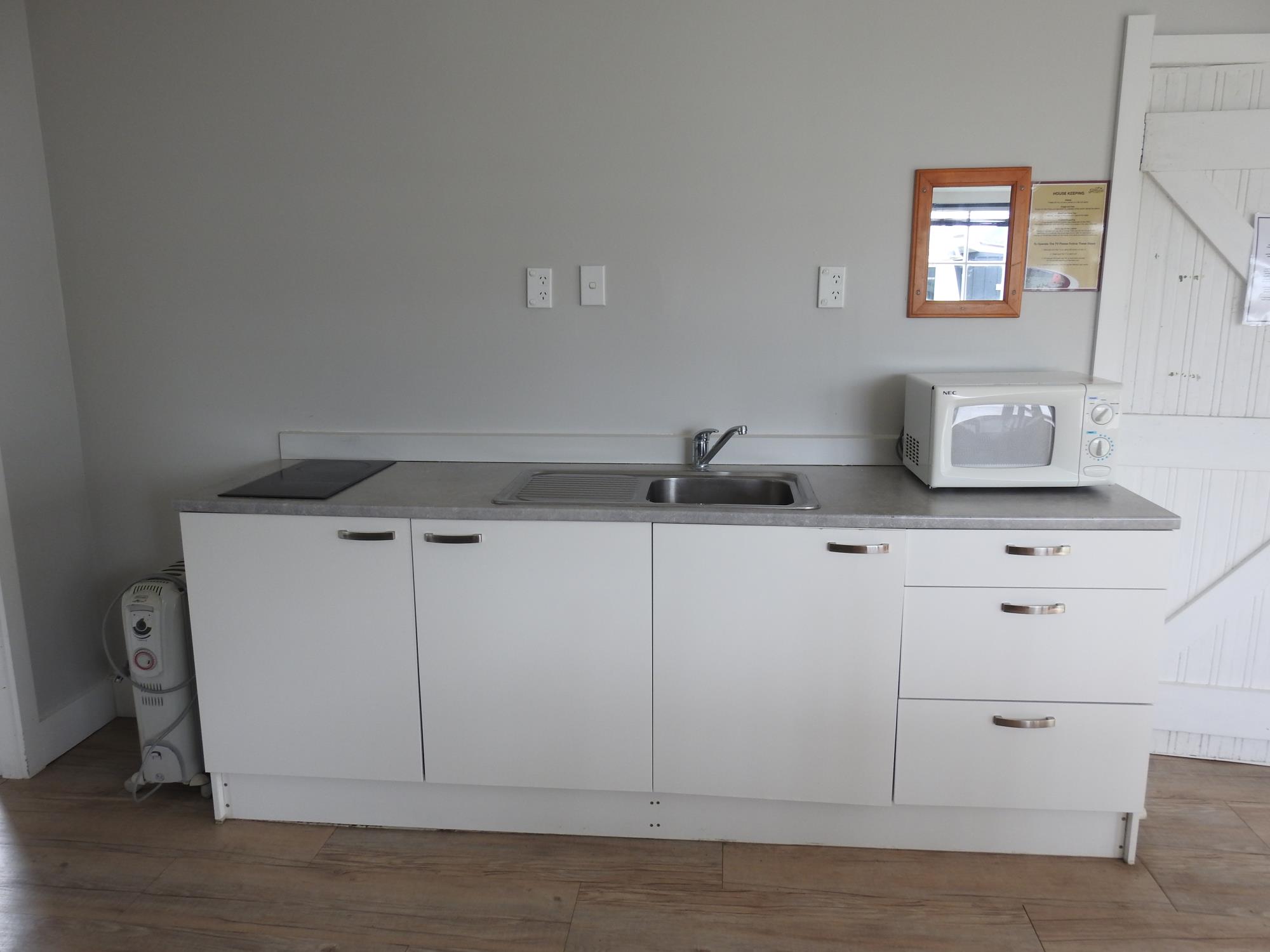 Kotare - North facing deck on the rock wall of the beachfront. This cabin has 1 x Queen bed in the main area and 2 x singles in a small room separated by a sliding door. There is a kitchenette and a fully equipped bathroom with toilet shower and basin. The Queen bed is fully made-up including sheets, blankets and towels. Singles have a bottom sheet and pillows including pillowcases. Bring your own linen or book linen hire at $10 per bed per stay. Extra Adults $25 & Extra Children $15 per night