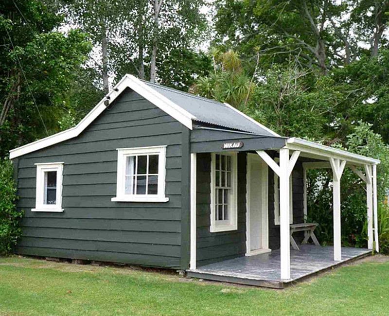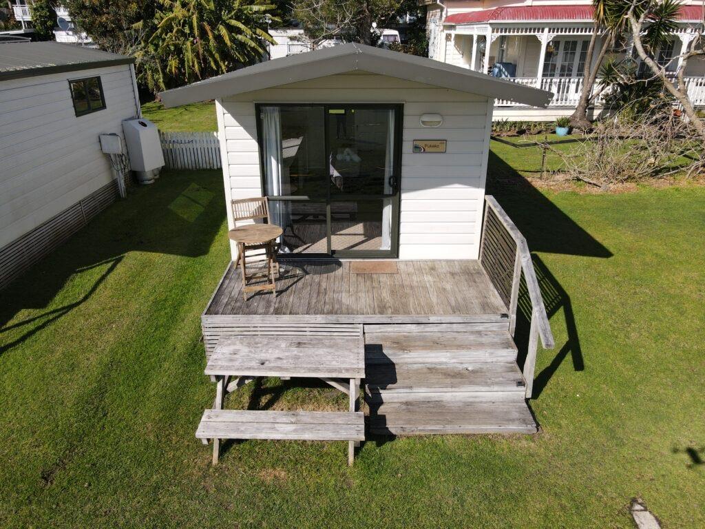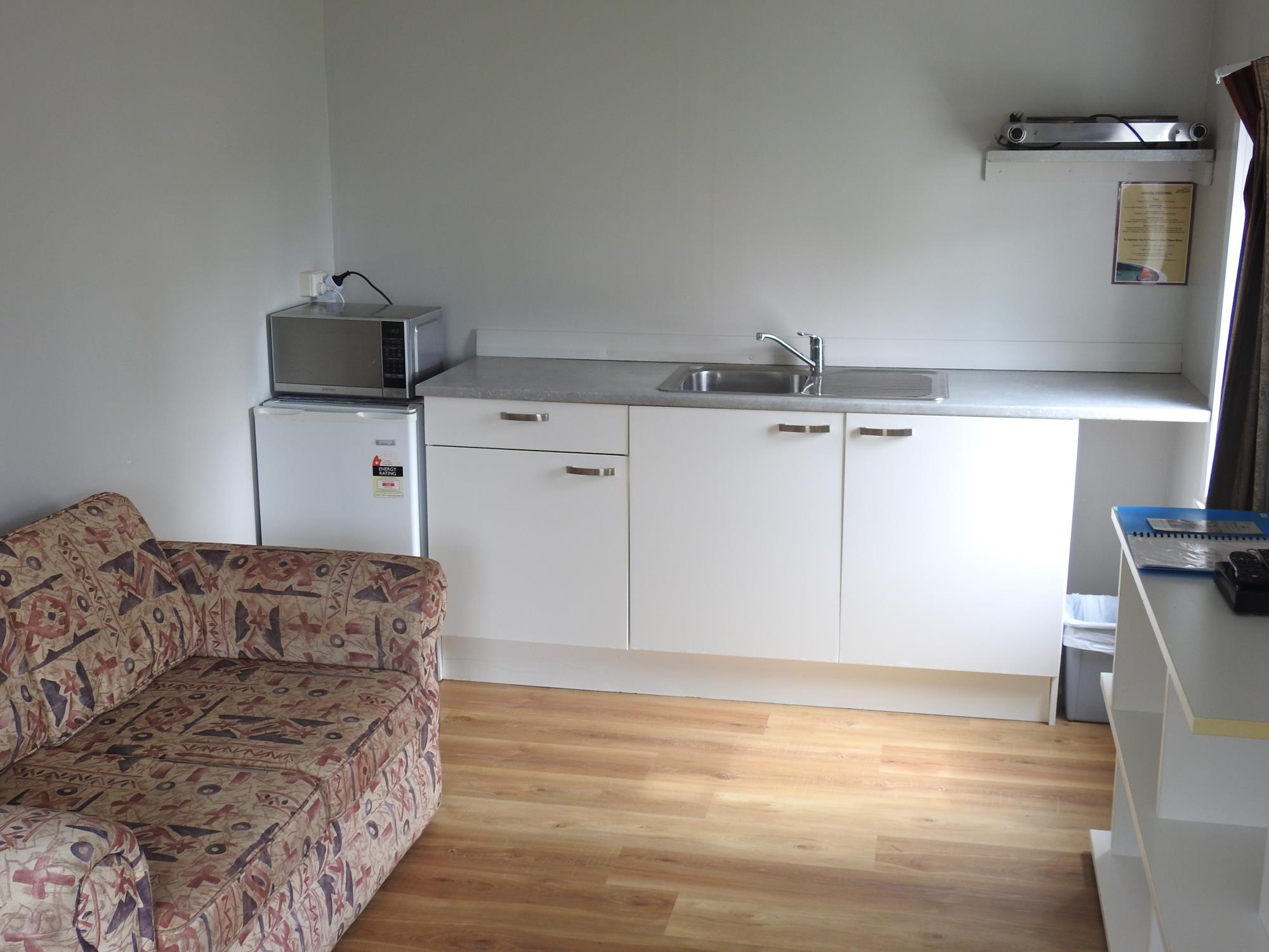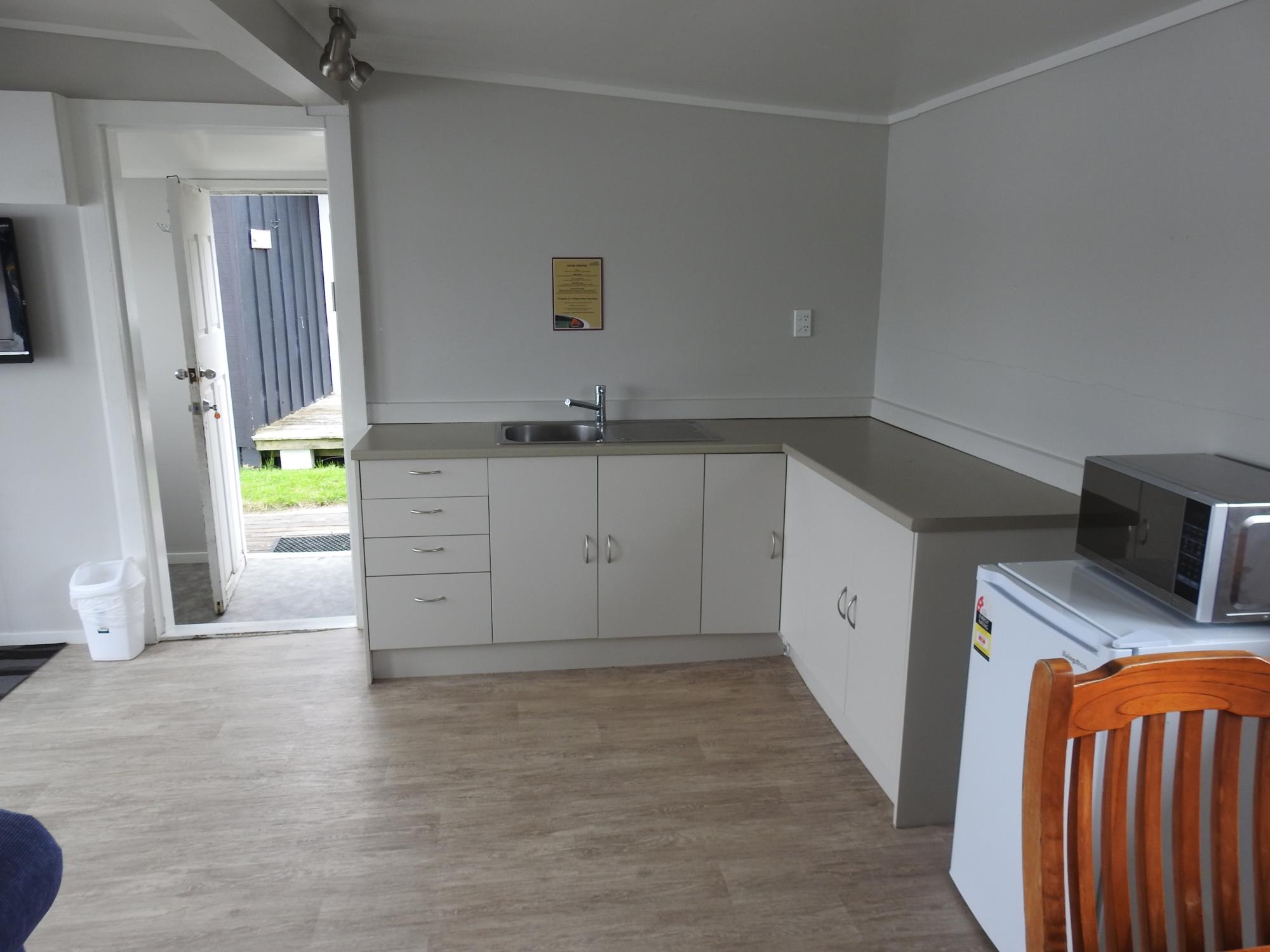 Pukeko - Non-Waterfront self-contained cabin located 1 back from the beachfront. This cabin has 1 x double in the main room and a small bathroom at the back of the cabin. It also has a fold down couch so could sleep an extra 1 or 2 people. It has a fully equipped kitchen and a small deck at the front. The Queen bed is fully made-up including sheets, blankets and towels. Bring your own linen for the couch or book linen hire at $10. Extra Adults $25 & Extra Children $15 per night