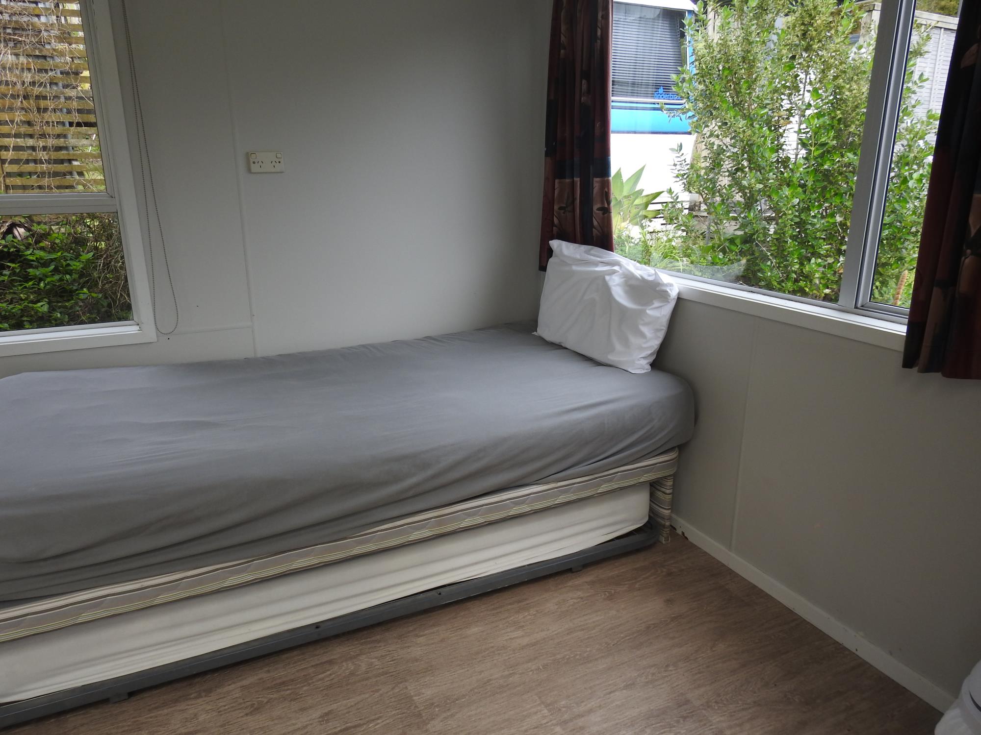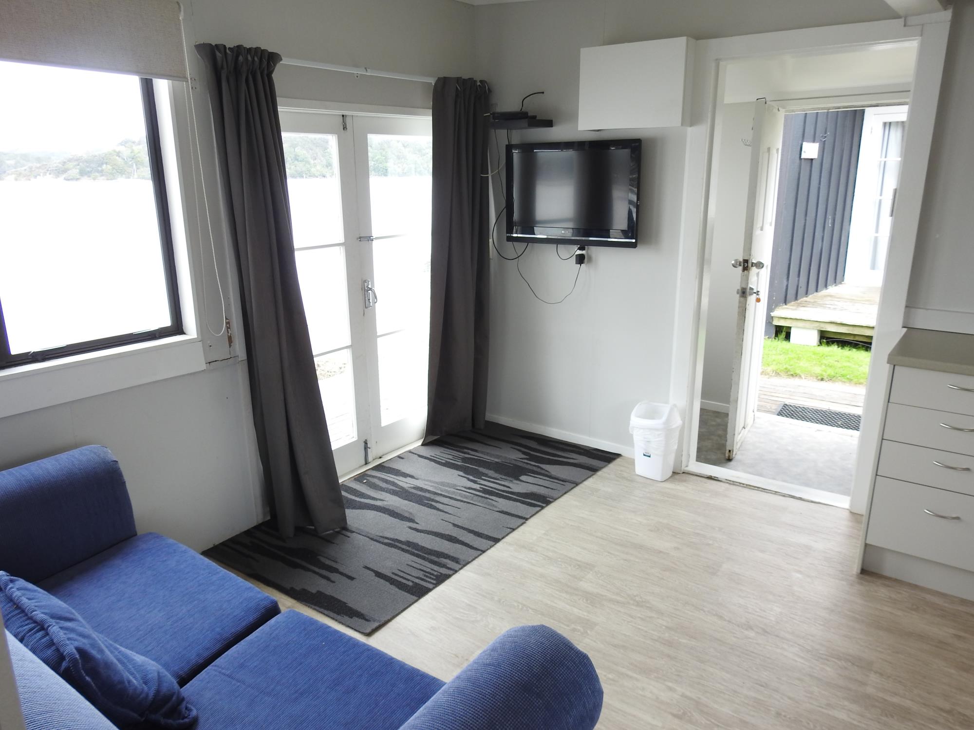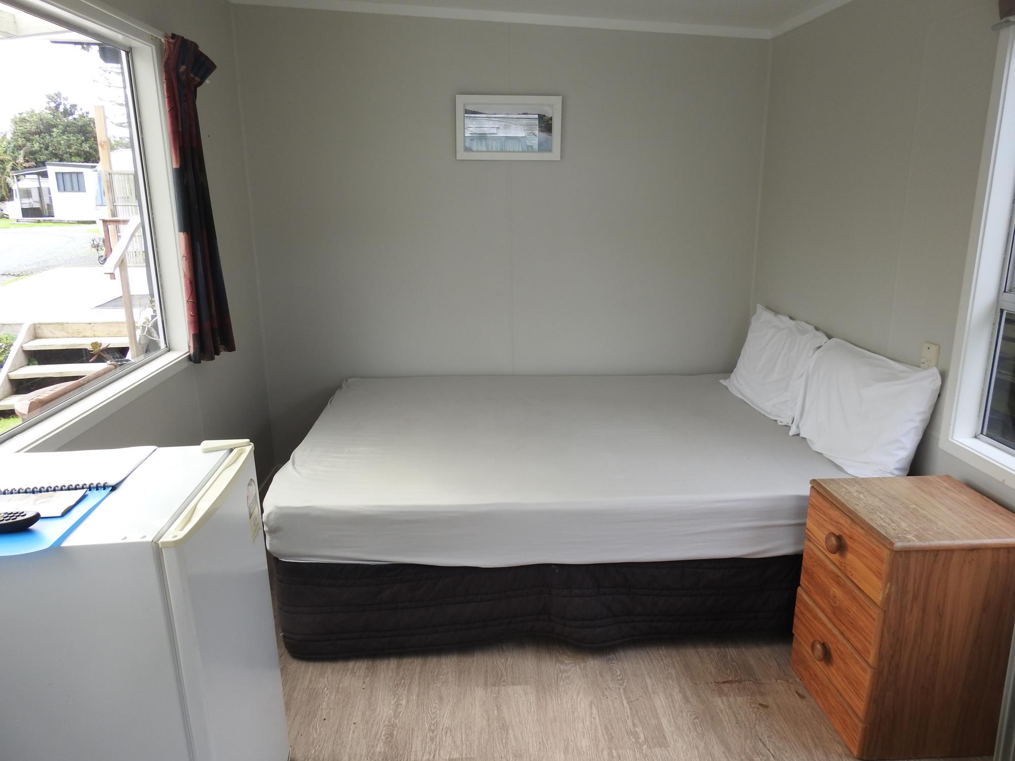 Totara - Non-Waterfront Standard Cabin has 1 x Queen bed and 1 x single with a trundler underneath. This cabin has a small fridge and a TV. All beds have a bottom sheet and pillows. You need to bring your own linen or hire linen for $10 per bed set.