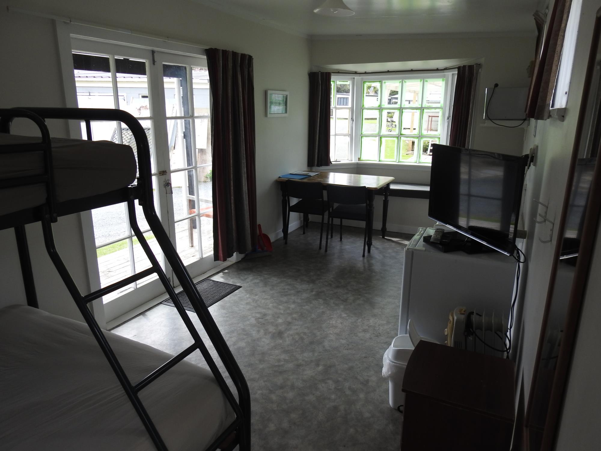 Kowhai - Non-Waterfront Kitchen cabin with a fully equipped kitchen. 1 x Queen bed at the back of the cabin and 3 x singles in a separate room. All beds have a bottom sheet and pillows. You need to bring your own linen or hire linen for $10 per bed set. There is also a fold down couch so could sleep another 1 or 2 people. Extra Adults $24 & Extra Children $15 per night