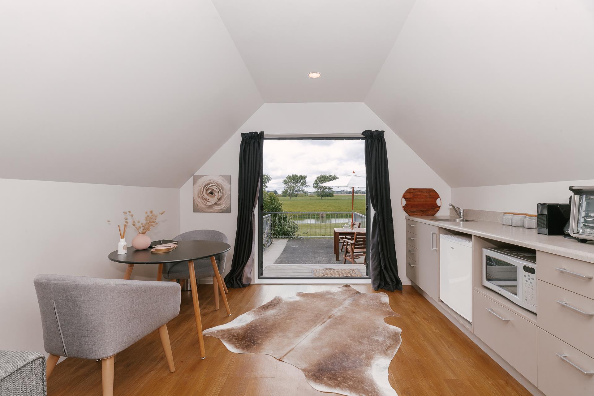 The Tree Tops is located in our loft, another accommodation option that is fully self contained and is located on site above the garage. It is separate to the main lodge via it's own private entrance. There is a small kitchenette with open plan lounge/dining and a fold out couch. Bathroom is light and bright and main bedroom has a queen size bed with a small balcony over looking the trees. Continental breakfast provisions are provided in the rate. Additional $25 per person for use of the spa