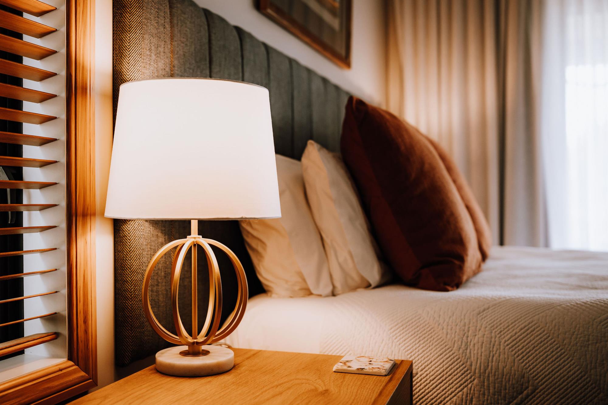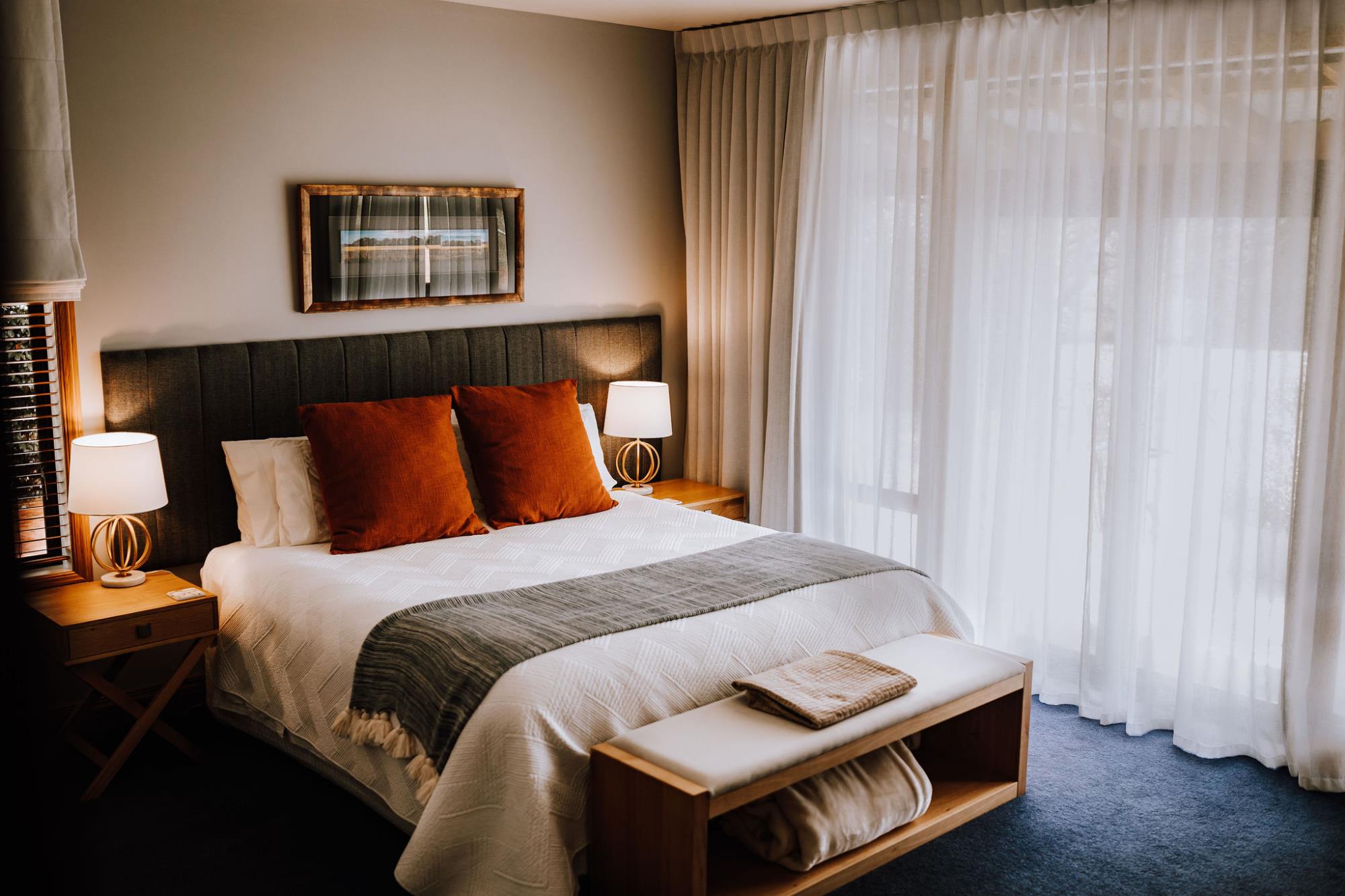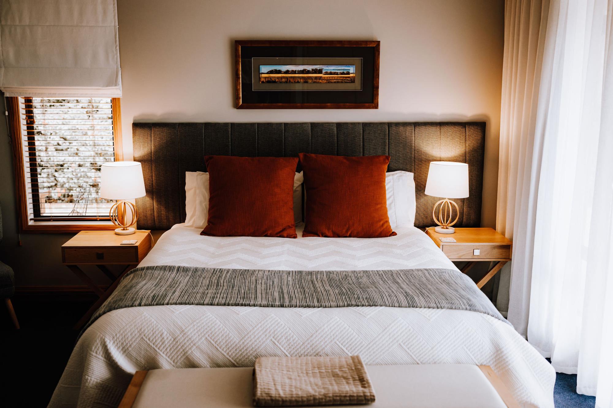 Super King suite includes an en-suite with a spa bath and shower. This room is our traditional styled lodge room that looks out to a private courtyard and is positioned at the front of the property.
