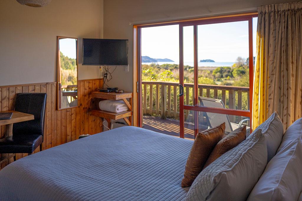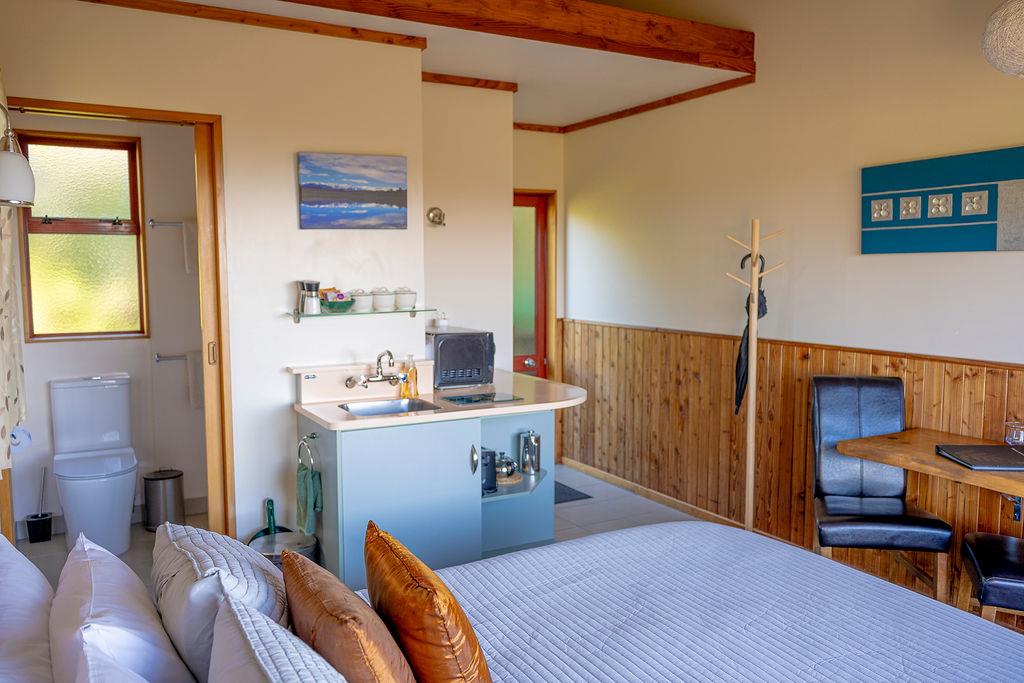Our semi-detached petite studio rooms have a queen sized bed, ensuite bathroom, coffee and tea making facilities, bar fridge, microwave, toaster and a shared balcony with ocean views. Our petite studio rooms are ideal for solo travellers or active couples.