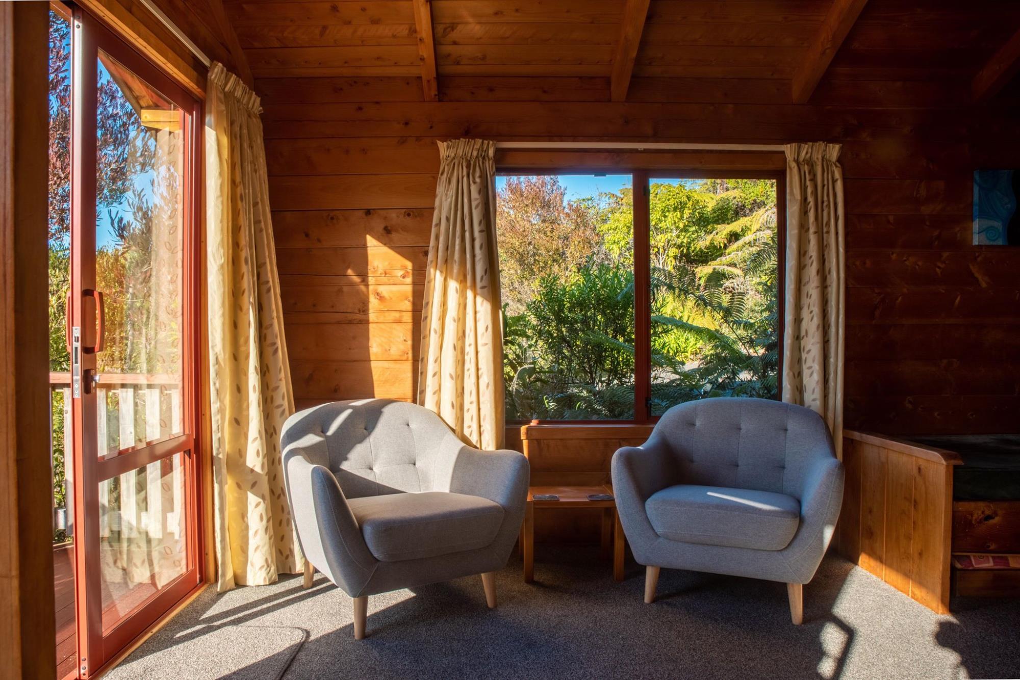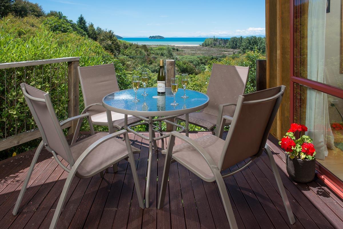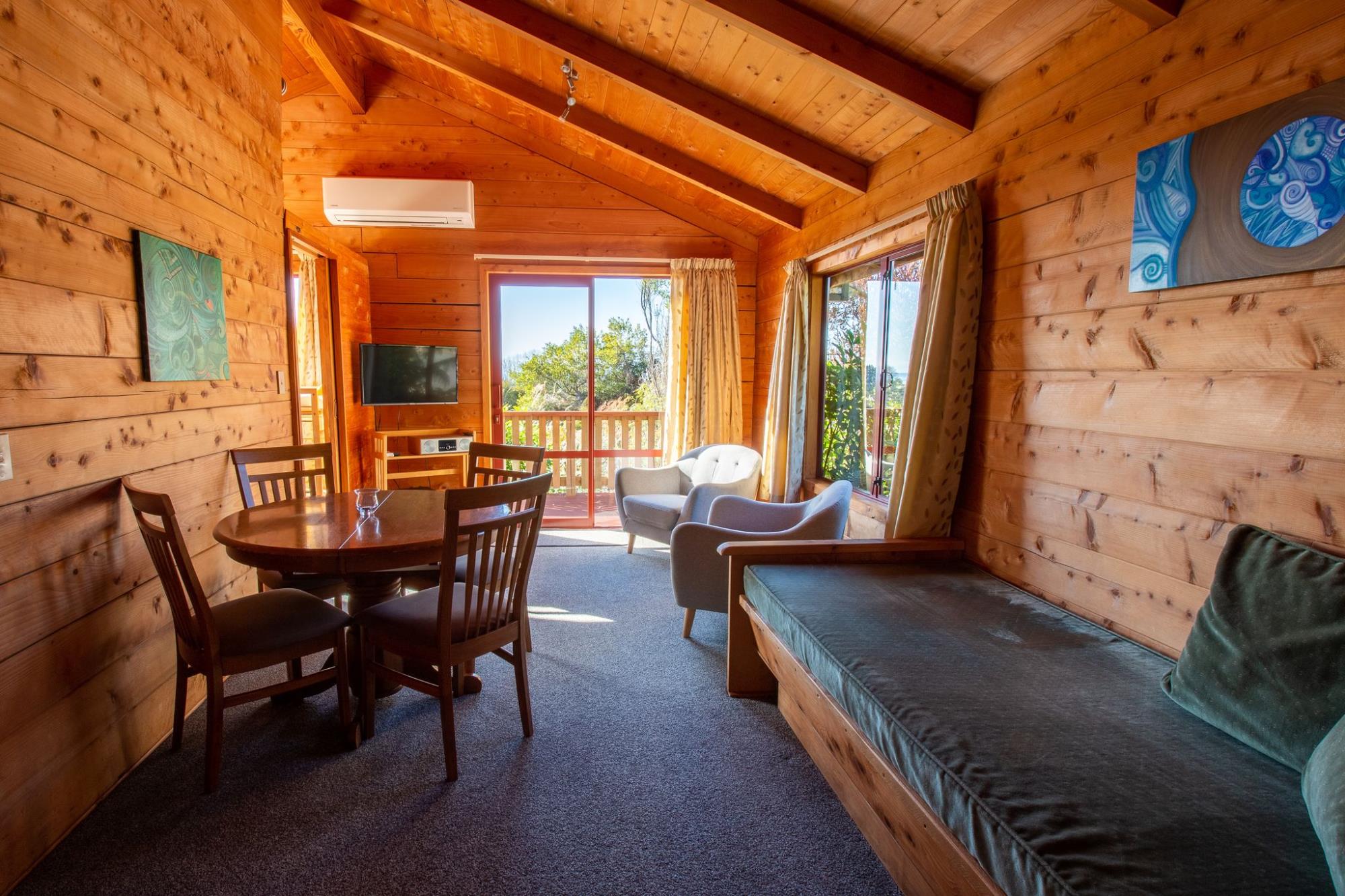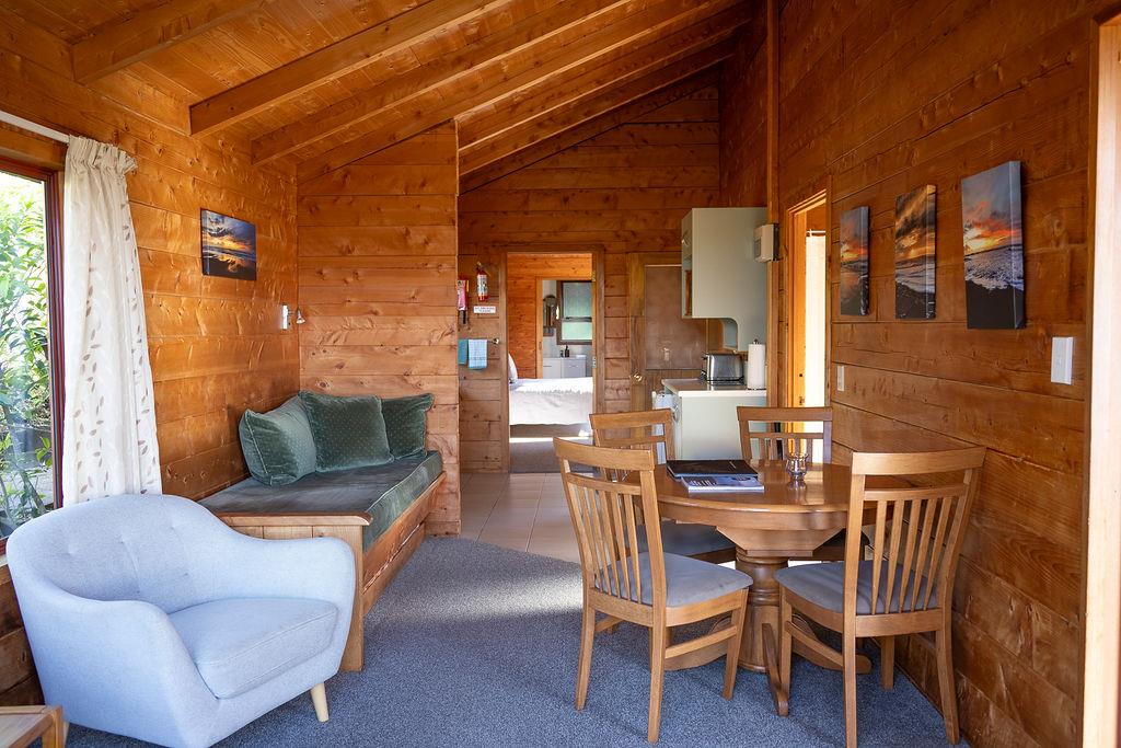 Our one bedroom chalets are free standing, built of solid timber and have an open plan design with a fully equipped kitchen, living/dining area including a day bed and occasional chairs, bedroom with a queen sized bed, separate bathroom and a balcony with panoramic sea views. Our one bedroom chalets are ideally suited to couples looking for a relaxing or romantic getaway.