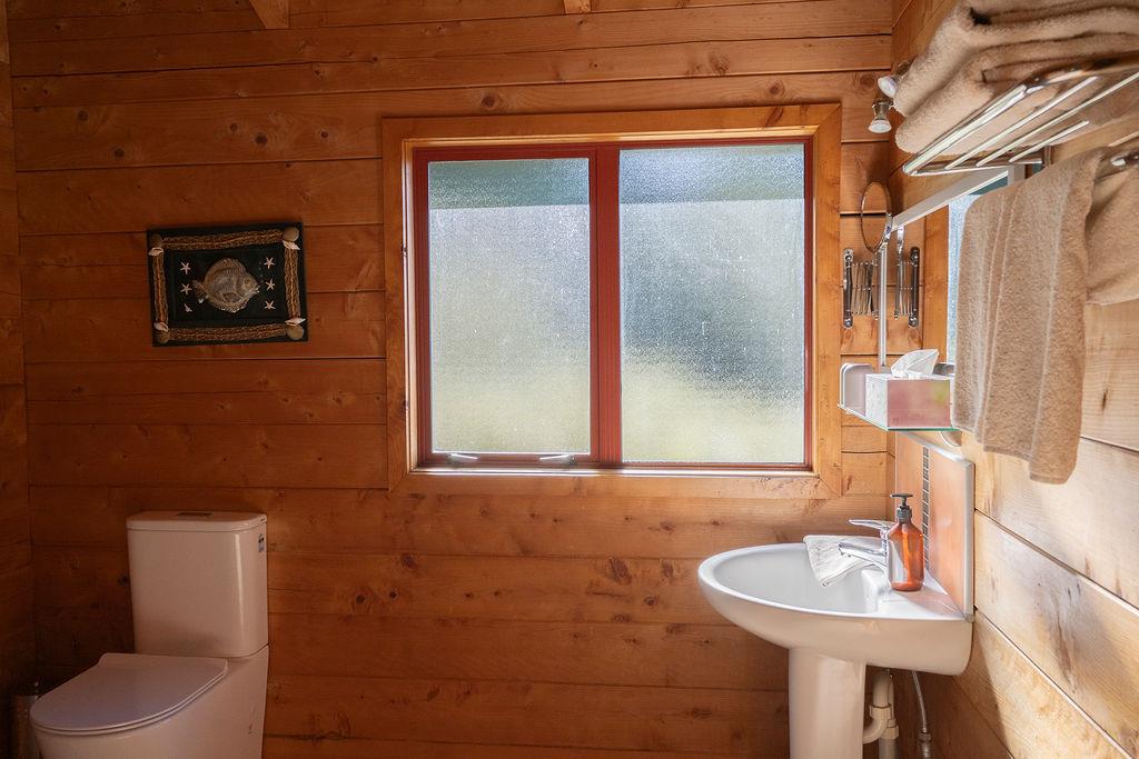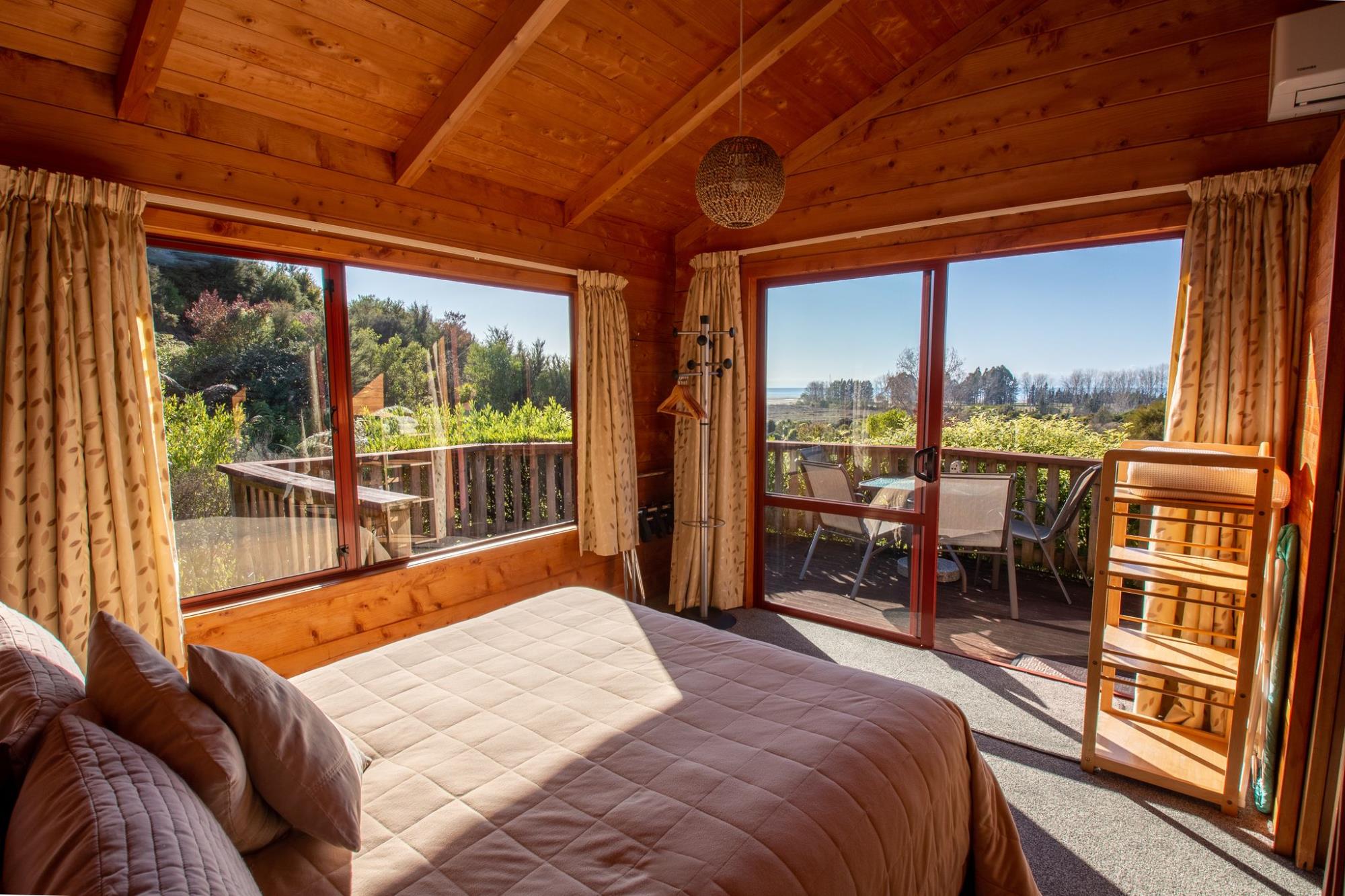 Our spacious free standing, solid timber, two bedroom chalet has a master bedroom with ocean views and a queen sized bed. The second bedroom has a queen sized bed, day bed and an en-suite bathroom. With a fully equipped kitchen, including dishwasher and full stove, a large main bathroom and a spacious living/dining area leading to a fully enclosed balcony with stunning ocean views, this is the perfect chalet for a family. This room is wheel chair accessible.