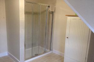 Bedroom One is on the first floor and has superking/ twin beds. Furnished in a mixture of painted furnishings, the colours are a mixture of greys & blues a mix of coordinating fabrics. The room has a flatscreen Freeview TV and a en-suite 4 foot shower complemented by soft towels and toiletries.